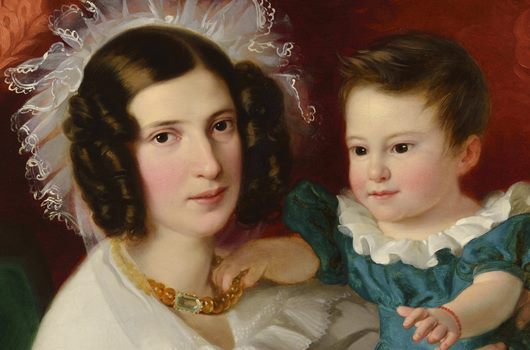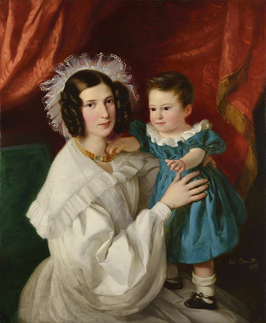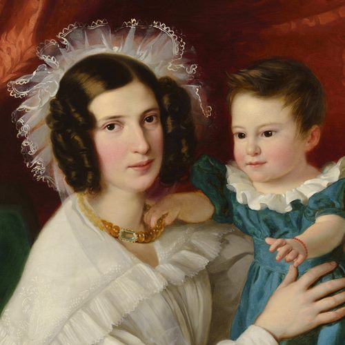 Náš portrét mladé ženy s dítětem, na kterém vyniká jako šperk nádherný colier se smaragdem, reprezentuje čistý biedermeier, jenž nepochybně visel v některém z pražských paláců či českých zámků. Nevíme ovšem, kdo je ta půvabná mladá matka a kdo je její syn. Víme, že obraz namaloval jeden z nejlepších portrétistů Rakouska a že vznikl za jeho pobytu u nás. Portrétů je na světě mnoho, ale málokomu se podařilo vytvořit tak čistou mateřskou atmosféru lásky jako Clarotovi. Teď bude probíhat pátrání. Ponoříme se do šlechtických genealogií a pokusíme se zjistit, zda je to knížecí familie Schwarzenberg či Liechtenstein, kam nás vedou prozatím nejisté stopy.